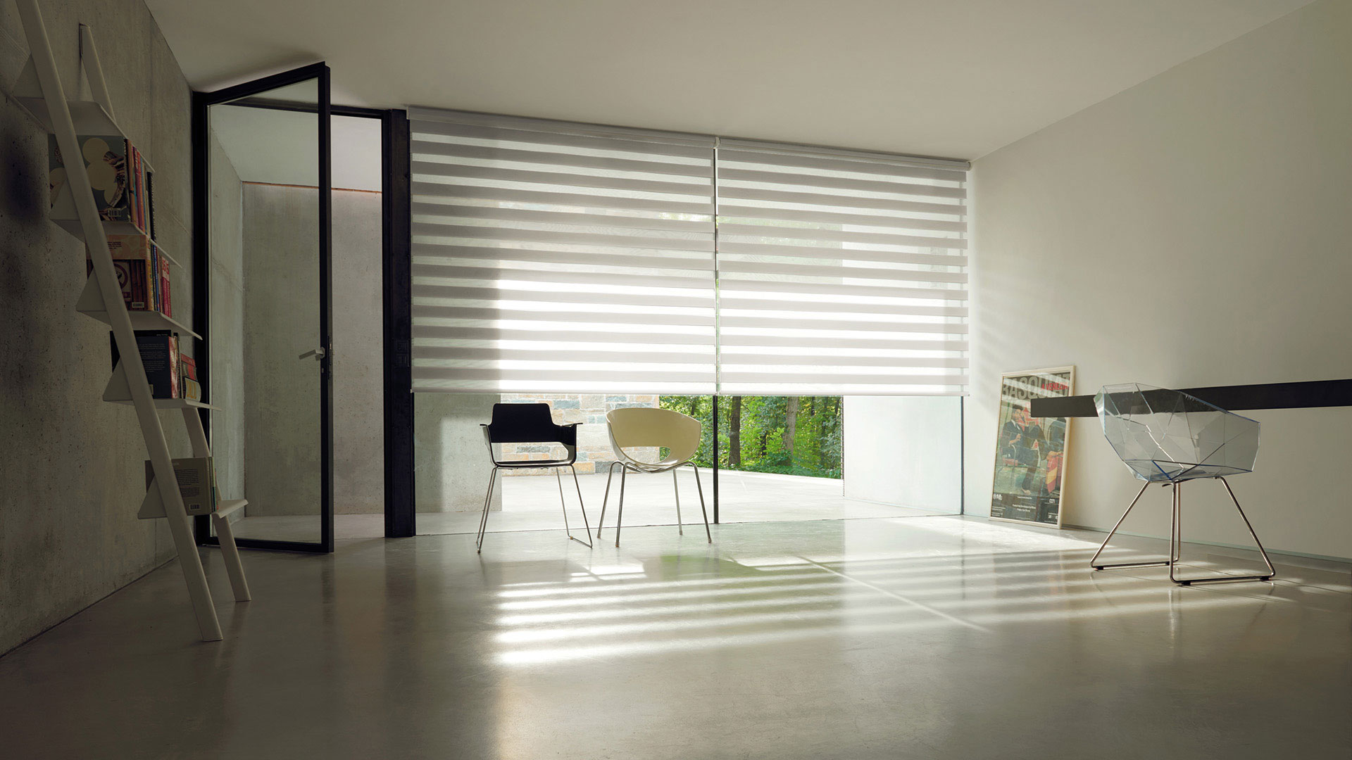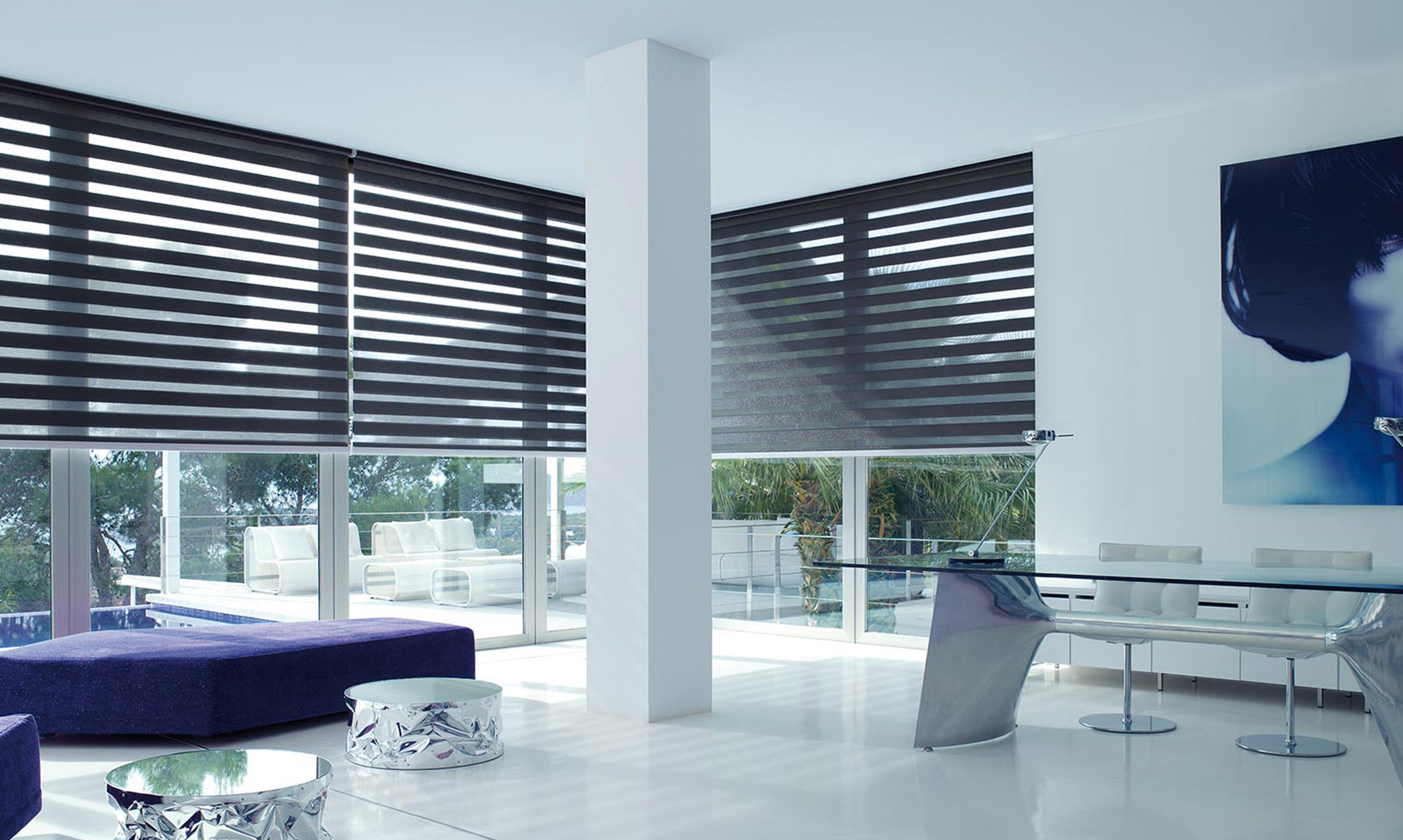 Las Cortinas Roller Duo permiten crear un ambiente claro y oscuro ideal para cada momento del día armonizando en los ambientes mas modernos y decorar las zonas más elegantes del hogar. El tejido esta formado por franjas horizontales traslúcidas y opacas que se sobreponen filtrando la luz de una forma gradual.